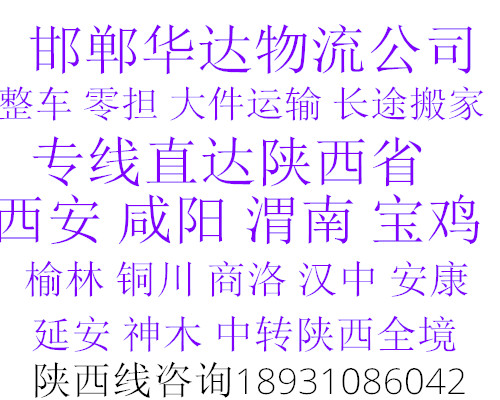 ★ 本站所l列邯鄲到西安貨運(yùn)專線費(fèi)用與時(shí)效僅供參考,如需詳細(xì)了解最低資費(fèi)請(qǐng)電話咨詢。