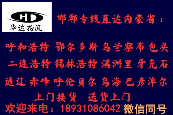 邯鄲到呼和浩特物流歡迎您的來電(0310-5510646//18931086042靳經(jīng)理)邯鄲到呼和浩特物流專線,邯鄲到呼和浩特物流公司的詳細介紹頁面。